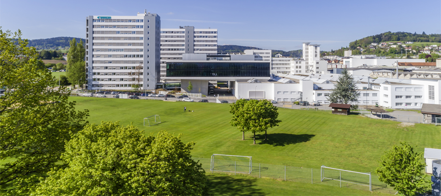 Aerial view of Bühler headquarters in Uzwil, Switzerland