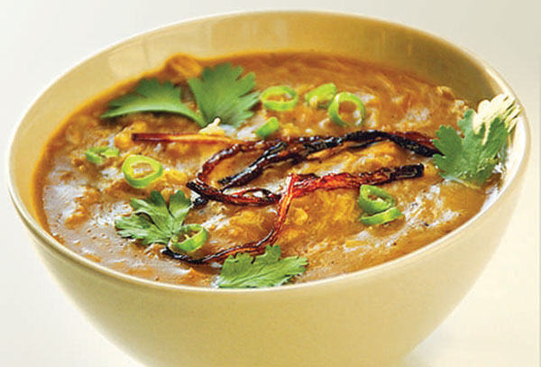 Haleem is basically a spicy lentil soup, very popular in Bangladesh. Haleem is made of wheat, barley, meat (usually minced meat of beef or mutton), different types of lentils, spices, and sometimes rice is also used. This dish is slow-cooked for seven to eight hours, which results in a paste-like consistency, blending the flavors of spices, meat, barley, and wheat.