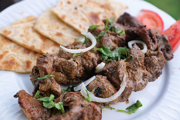 Sheek Kabab is beef or mutton cut into cubic pieces, marinated for a long time with spices, put together on a skewer, and barbecued. The main trick of melt-in-mouth kabab is how to marinate it and for how long to marinate it. They are marinated for three hours to two days.